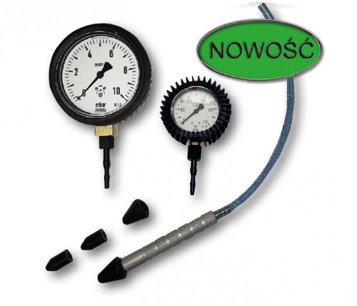 - manometr 0-10 mbar (1mbar = 1cm słupa wody) z króćcem do podłączenia wężyka